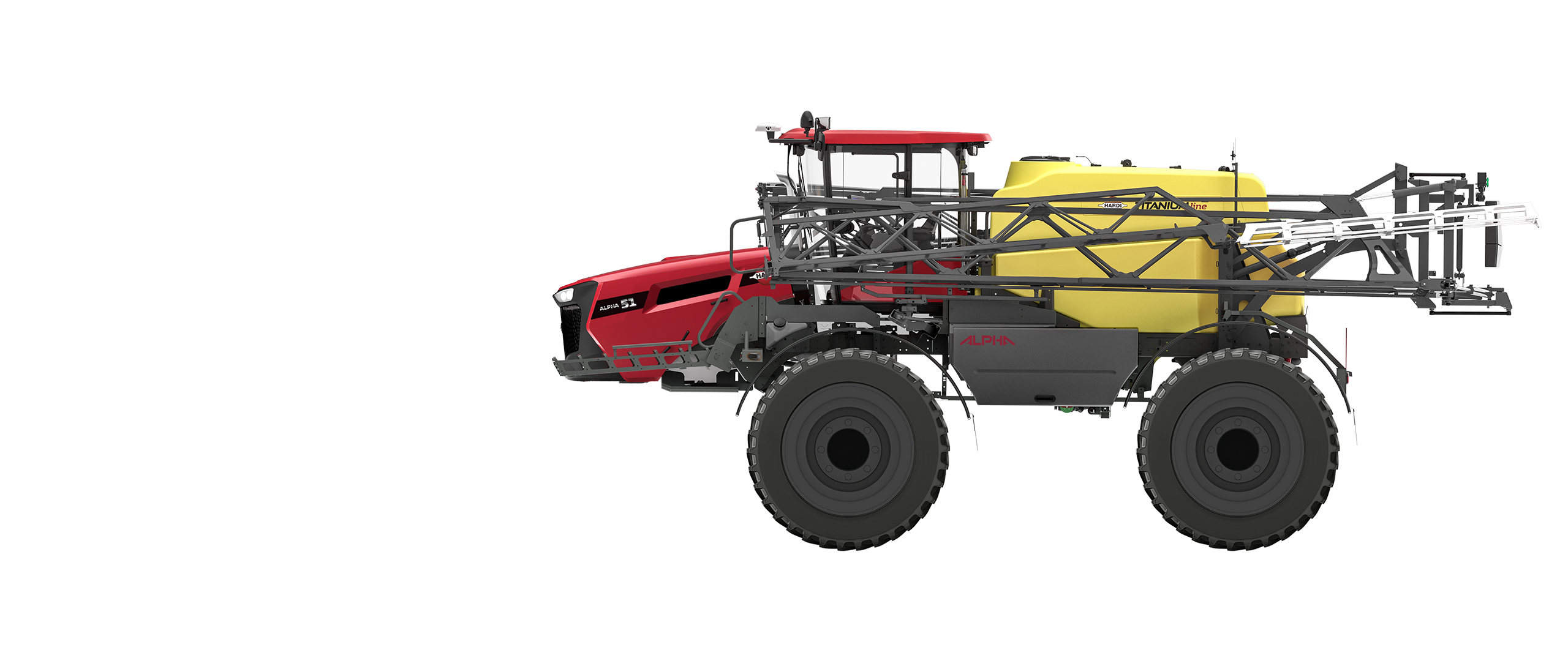 The ALPHA offers a wide array of customisable functions for optimum spray performance and precision The ALPHA TITANIUM line is one of the most versatile high-capacity self-propelled sprayers on the market. All spray and hydraulic functions are fully controlled from the EvoCab. Primary switch functions are locat- ed within easy reach at the right-hand seat-mounted SprayCenter, while sec