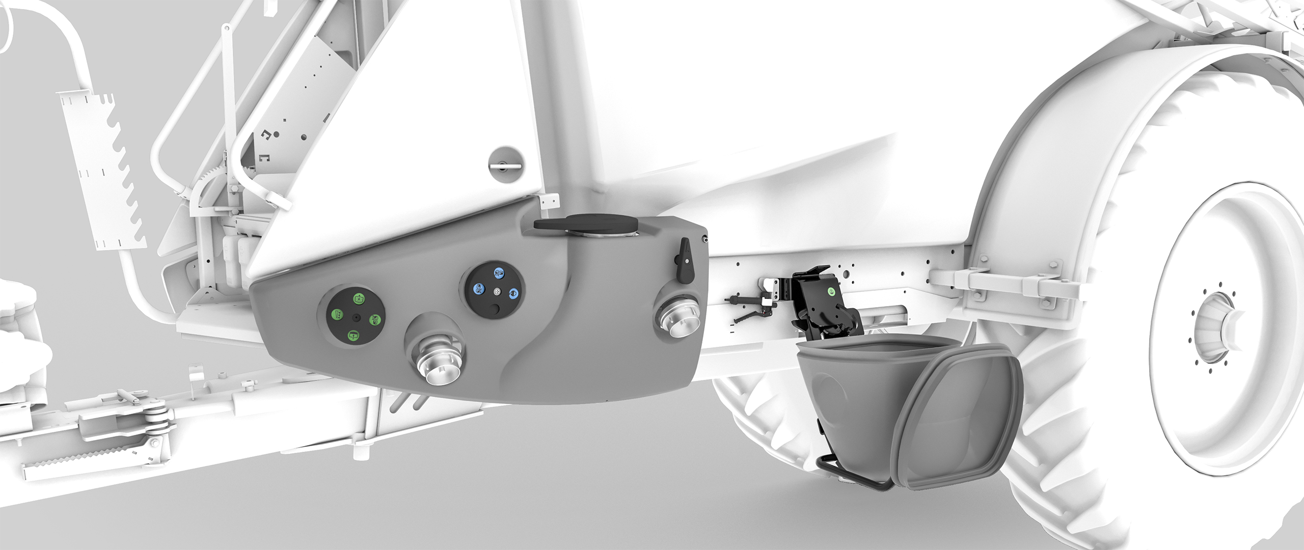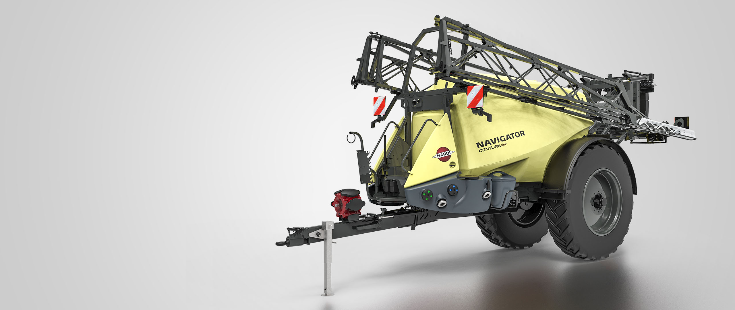 Low centre of gravity The entire NAVIGATOR design has the lowest possible centre of gravity without compromising clearance under the sprayer. Unique design with long drawbar The long drawbar is one straight line from the coupling point to the axle. Being bolted underneath the frame, it ensures good driving stability and absorbs the up-and-down forces at high-speed driving. The drawba